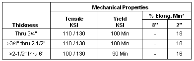 *Adjustments to elongation requirements may apply depending on plate width. These values are for plates 96” wide as rolled.