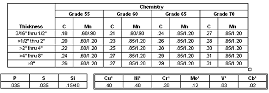 This grade must be killed and made to a fine grain practice. Plates over 1-1/2” thick must be normalized. Additionally, when impact (notch toughness) tests are required on plates up to 1-1/2” thick, the plates must be normalized.
