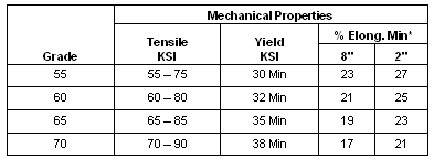 *Adjustments to elongation requirements may apply depending on plate thickness. See ASTM A 20.
