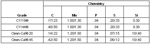 There are two families of free-machining plate steels available; each offers different benefits. The C1119®/C1144® steels have higher sulfur levels and will machine faster and provide better tool life. Clean-Cut® steels have somewhat lower sulfur levels, resulting in better internal soundness in thicker plates, and also providing for improved surface finish.